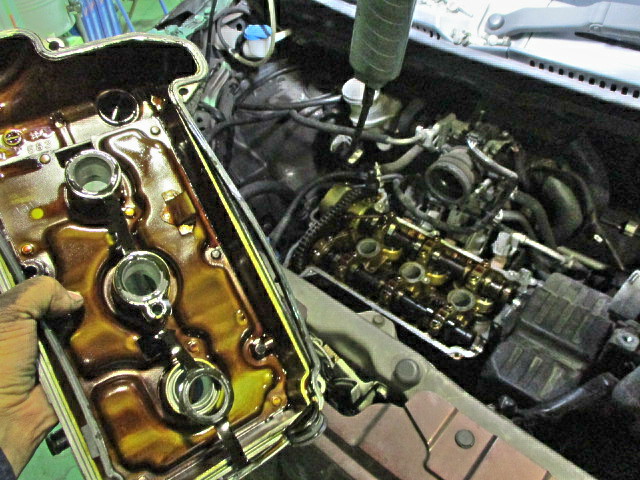 2015年12月2日2017年11月2日Car's MNo Comments MF22SのMRワゴンは車検でのご入庫、 今回はタイヤ交換、ATF交換、 そしてヘッドカバーからのオイル漏れが顕著でしたので、 作業させていただきました。 よくオイル交換されてきているようですが、 内部はこんな具合です。 まずまず、といった感じでしょうか。 今後もかかさずオイル交換を実施しましょう、 ありがとうございました! 関連