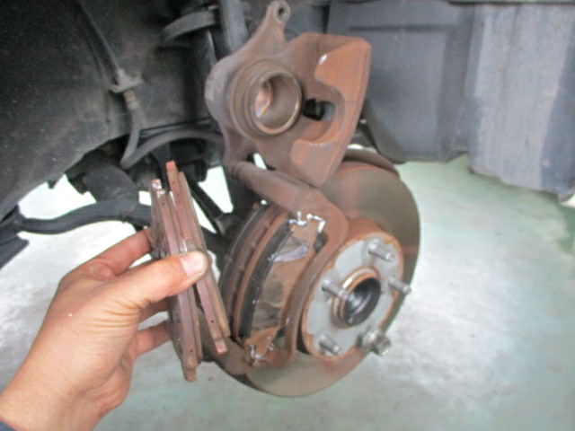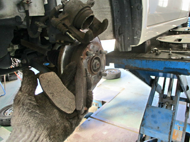 MH21SのワゴンRもフロントブレーキパッド磨耗ギリギリ、、、