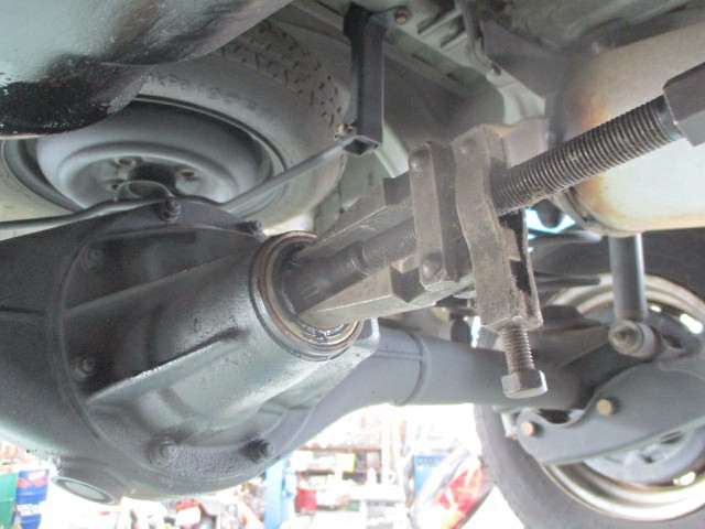 2016年6月16日2017年11月2日Car's MNo Comments 今日は朝からゆるい雨ですね。 12か月点検で入庫だったU61Vのミニキャブバンは、 ガソリンタンクやデフ周りが油でべっとべと、 デフミッドシールからのオイル漏れ、、、 ミッドシールをプーラーで引き抜きます。 取り外したシールはリップがよく痛んでおりました。 フランジ側もきれいに清掃しておきます。 ツラになるまで上手に打ち込んでOK、 ありがとうございました! 関連