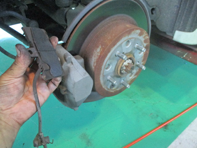 点検すると、リヤパッドはもうギリギリのギリギリ、