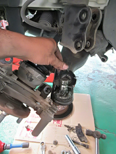 左フロントのロワーアームのボールジョイントブーツが、