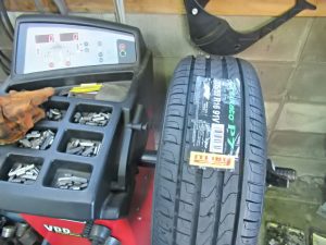 タイヤ交換で入庫の147、ピレリタイヤをお持ち込みで。