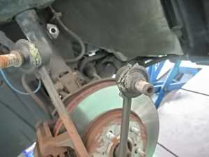 フロントのスタビライザーのリンクロッドが傷んでいるので交換、