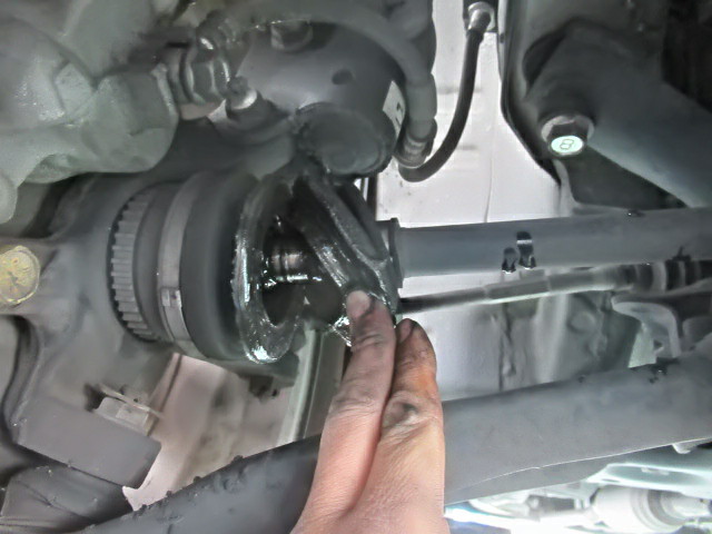 右側ドライブシャフトのアウターブーツの破れが見つかったので、