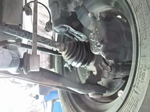 左のフロントドライブシャフトのアウターブーツの破れは交換、
