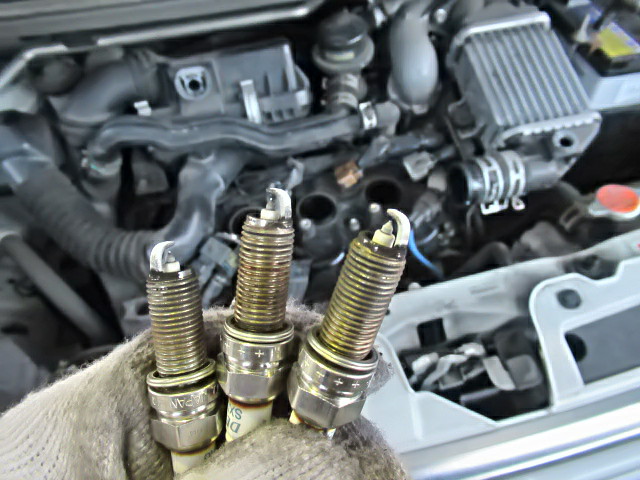 今回で新車から10万キロ、DENSOからNGKに変更です。