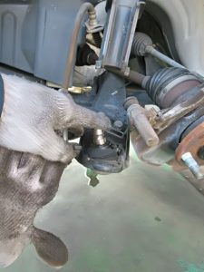 フロントのロワーアームのボールジョイントブーツの破れが左右、
