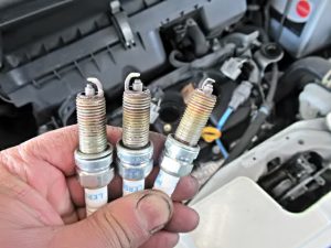 消耗したLKR6Cのスパークプラグも交換、汚れたエアエレメントも。