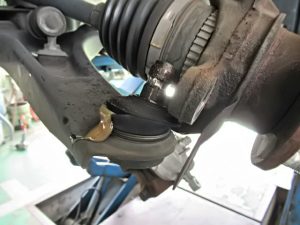 左フロントロワーアームのボールジョイントブーツの破れ、