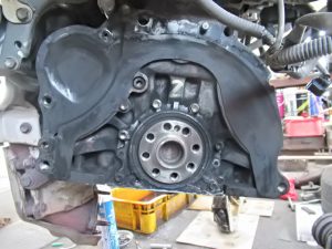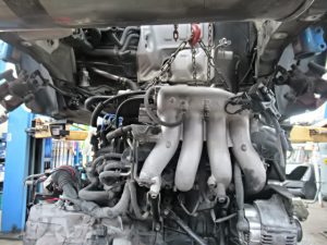 右側ドライブシャフトや背面のブラケット、オルタネーターなど。