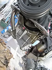 オイルクーラーを慎重に取り付けて、エアコンコンプレッサーとアジャスター、