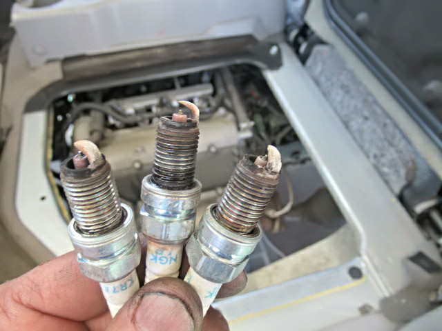 おそらく新車から無交換と思われる、摩耗したスパークプラグは交換、