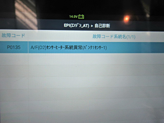 今回はダイアグコードP0135で、フロントO2センサーのヒーター回路の不具合、