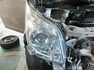 バンパー外れてる間に、くすんで真っ白のヘッドライトもポリッシュ、
