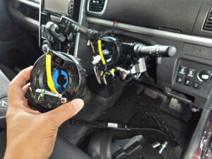 今回はハンドル裏に設けられたスパイラルケーブル、という、