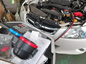 遠方より車検で入庫のYA5のエクシーガ、