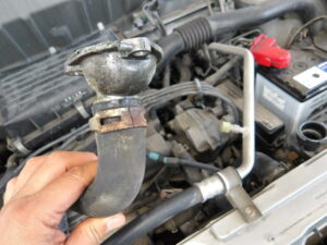 ラジエーターのアッパーホースとサーモスタット、