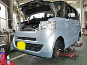 タイヤとエアコンの点検で入庫のL250Sのミラアヴィ、
