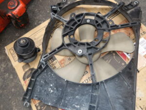 ラジエーター裏の電動ファンモーターの寿命が来たようで、