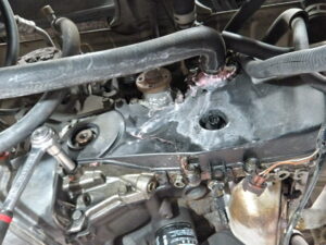タイミングベルトカバーがオイルと冷却水漏れで、、、