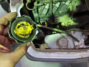 フィラーキャップ内は水分を含んだ油でぎっとり、、、