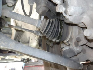 併せて左フロントドライブシャフトのアウターブーツの破れ、